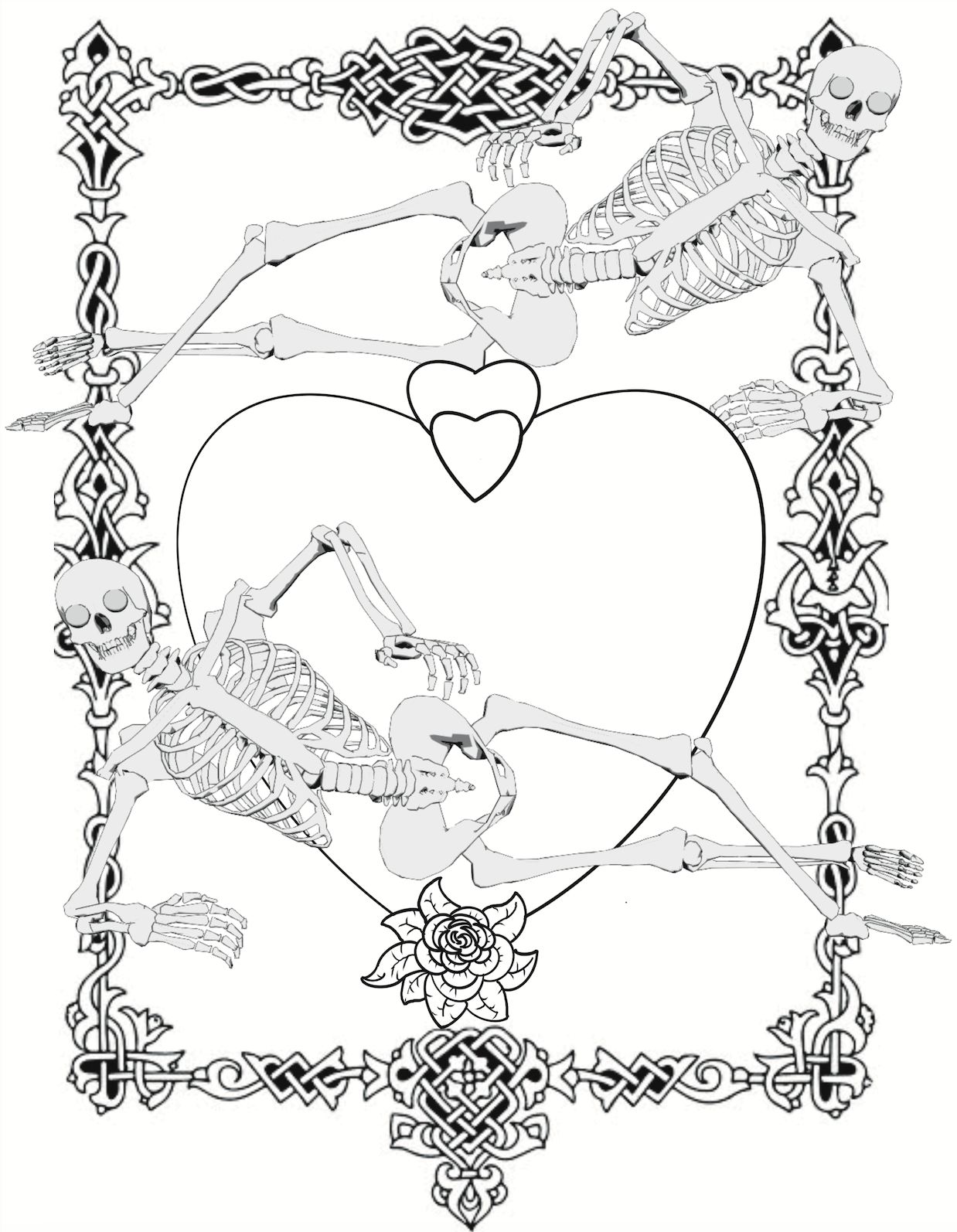 Coloring Sheet $2.97Skeleton and Hearts